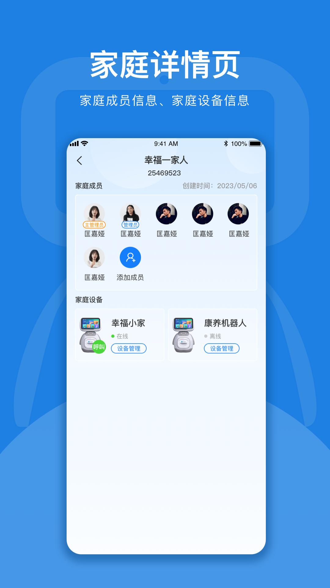 可创建家庭,管理家庭成员、家庭设备,设置成员和设备的权限