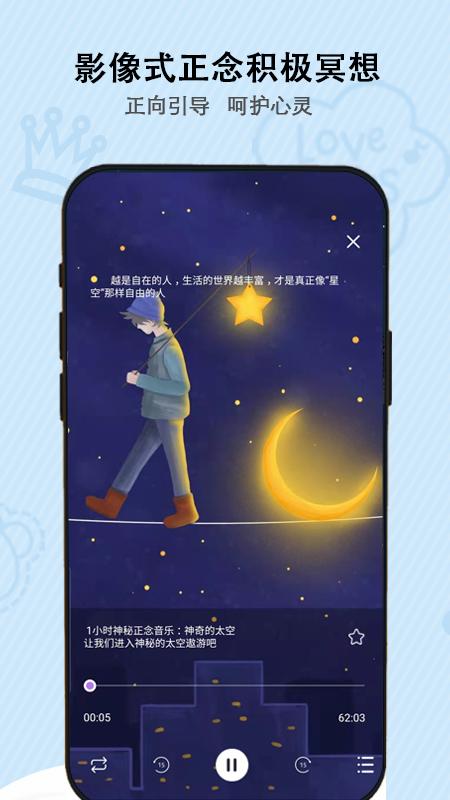 分享海量的各类正念音乐和声音场景,为儿童青少年提供不同功用的音乐和声音体验,达到放松解压、辅助睡眠、安心凝神、专注益智等作用。