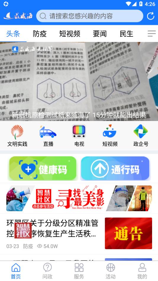 最威海是环翠app是专为威海环翠区制作的融媒体移动平台,平台拥有新闻,问政,服务,活动等等内容板块,可以帮助更好的引导及服务威海环翠区。