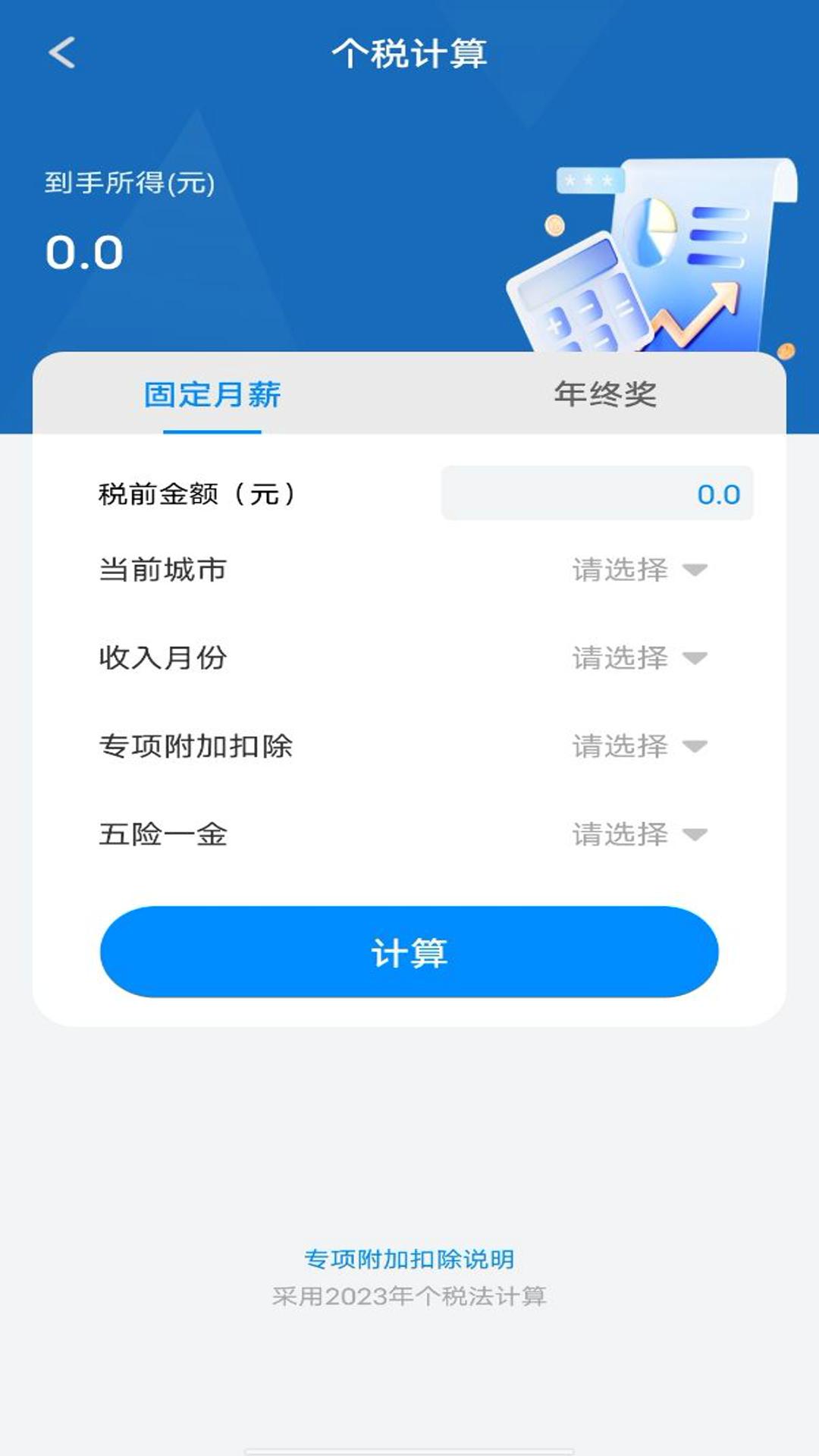 个税计算: 根据税法,输入您的收入情况,万能语音计算器将为您计算应缴纳的个人所得税额。