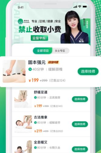 上门服务:选择您最喜欢的按摩服务项目,最喜欢的技师,一键预约上门按摩。