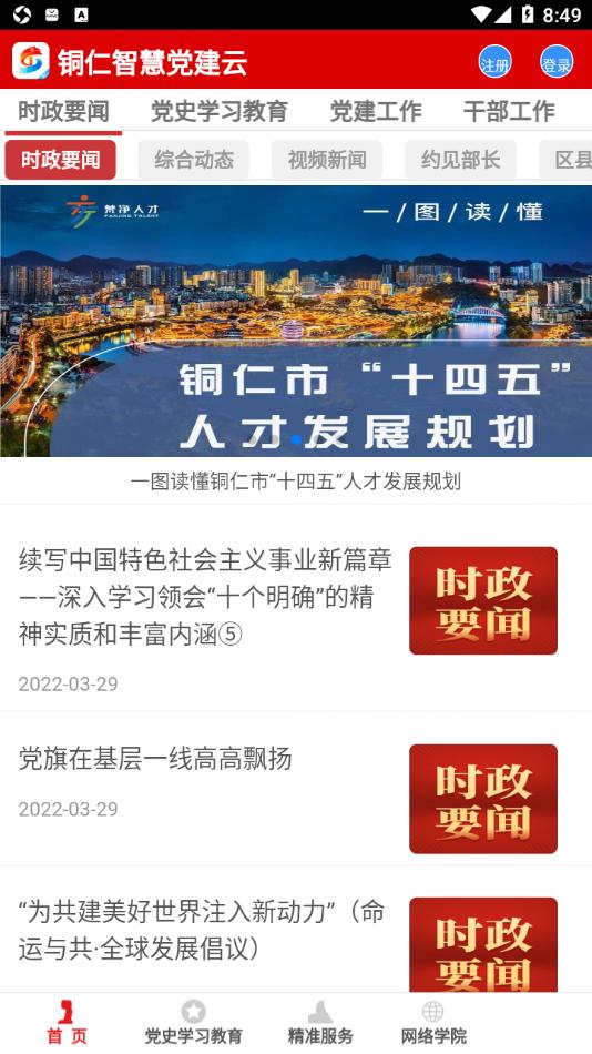铜仁智慧党建app是专为铜仁制作的智慧党建一体化平台,平台拥有新闻资讯,党史学习教育,精准服务,网络学院等等内容,可以帮助更好的服务党建。