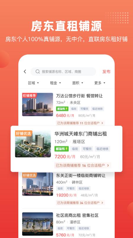 【免费找铺、极速转店】严选真铺源,放心找铺;房东转店全网极速发布,抢先获取租户。