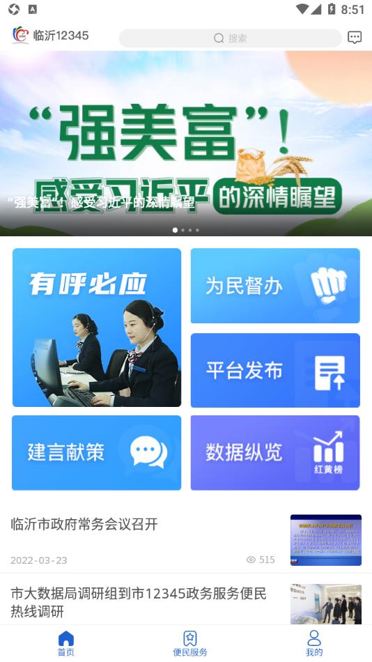 临沂12345app下载是专为临沂市制作的政务服务便民热线平台,平台拥有为民督办,平台发布,数据纵览,建言献策,便民服务等等功能内容,可以帮助用户更好的临沂生活。