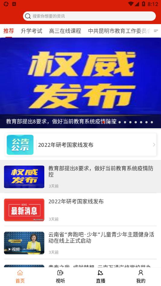 昆明教育电视台app是一款专为昆明制作的教育电视台,平台拥有新闻,视听,直播等等功能内容,可以帮助更好的服务用户,需要的朋友欢迎前来下载使用。