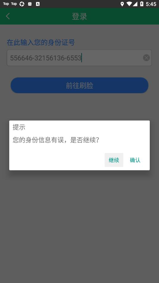 下载安装阜新市城乡居民养老保险app,打开软件,进入登录页面,输入身份证号,点击前往刷脸