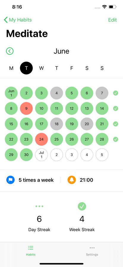 1、Hapit帮助用户可以轻松进行打卡,在这里设置自己的生活计划