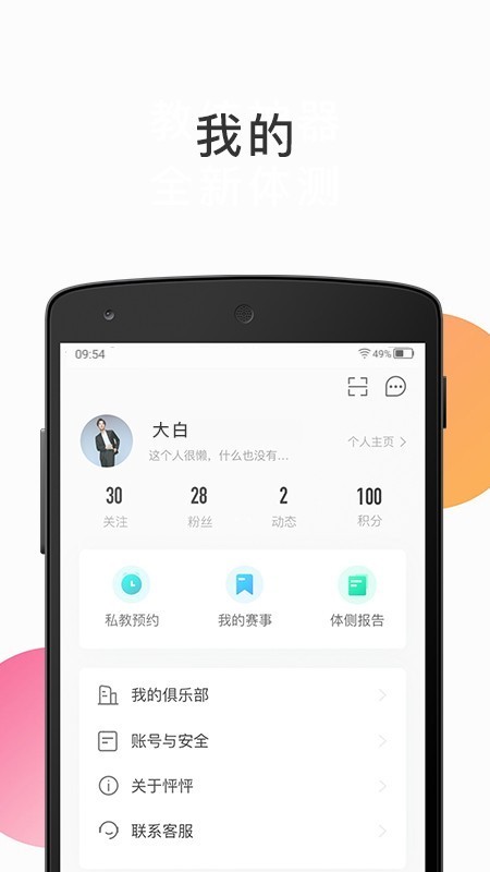 2、你可以在怦怦健身app上查看健身教练的介绍,选择适合的教练进行约课,app还可以追踪你的训练成果