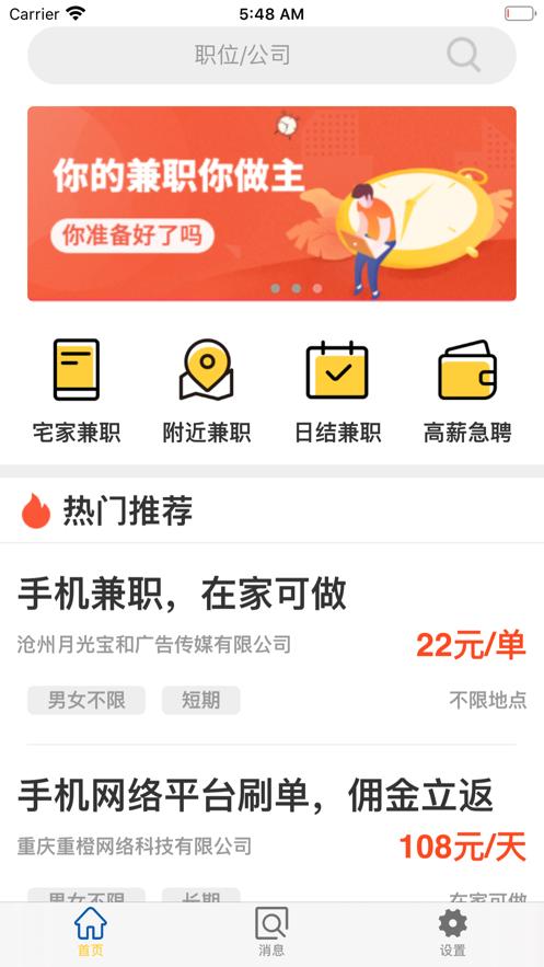 1、提供了海量的被认证了的兼职工作,让用户们能够自由的寻找需要的工作岗位;