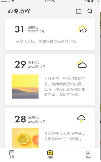 水滴日记,写下今天遇到的事情,随时记录想法和事务,这里所支持的功能比较多,可以选择多种字体样式,随意插入图片和图形,并配有日历指示功能,方便检查每天日记状,为你安排好任务计划,所有日记均在本地进行加密存储,使日记的安全性大大提升。保护隐私的同时也满足了更快的加载速度,虽然日记不一定只写当天的事,还是当天的事当天写好,不要非把当天的事放到以后再去写。