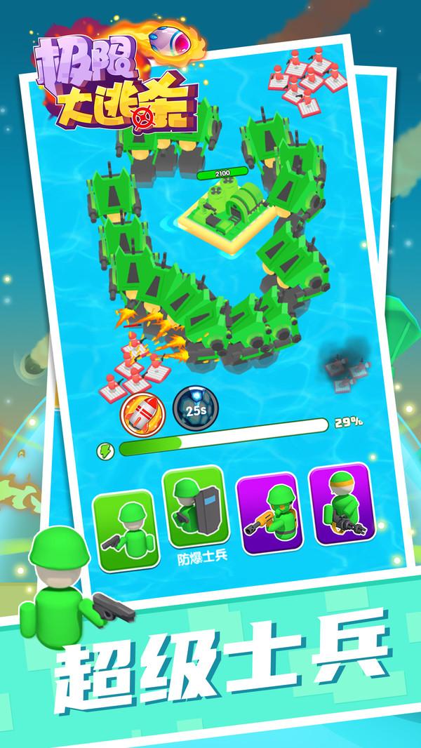 极限大逃杀游戏是一款非常好玩的休闲射击冒险游戏,玩家在游戏中可以体验到非常好玩的游戏模式,你将召集你的军队进行领土的争夺,不同的兵种拥有不同的效果,利用他们的武器进行疯狂的射击。