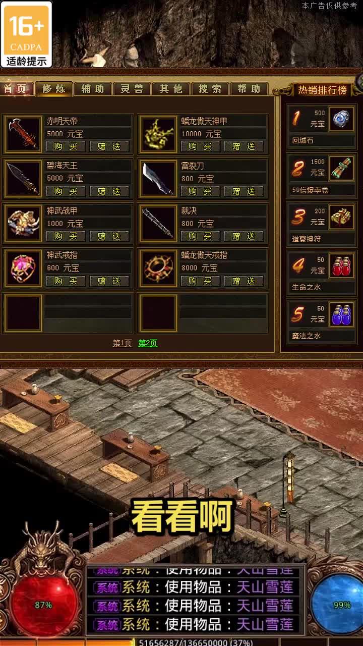 3.免费游戏PK,超酷装备掉落,很多公会入驻。