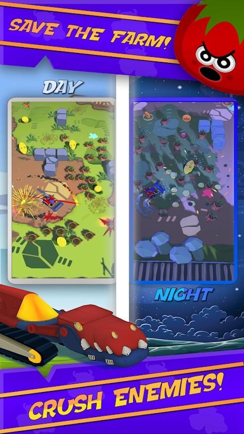这款游戏拥有着非常有趣的设定,在这乱了套的农场中玩家将操控拖拉机为了保卫农场而战,游戏的玩法比较简单,但是你需要了解不同农作物敌人的特点对症下药才能取得更好的效果。