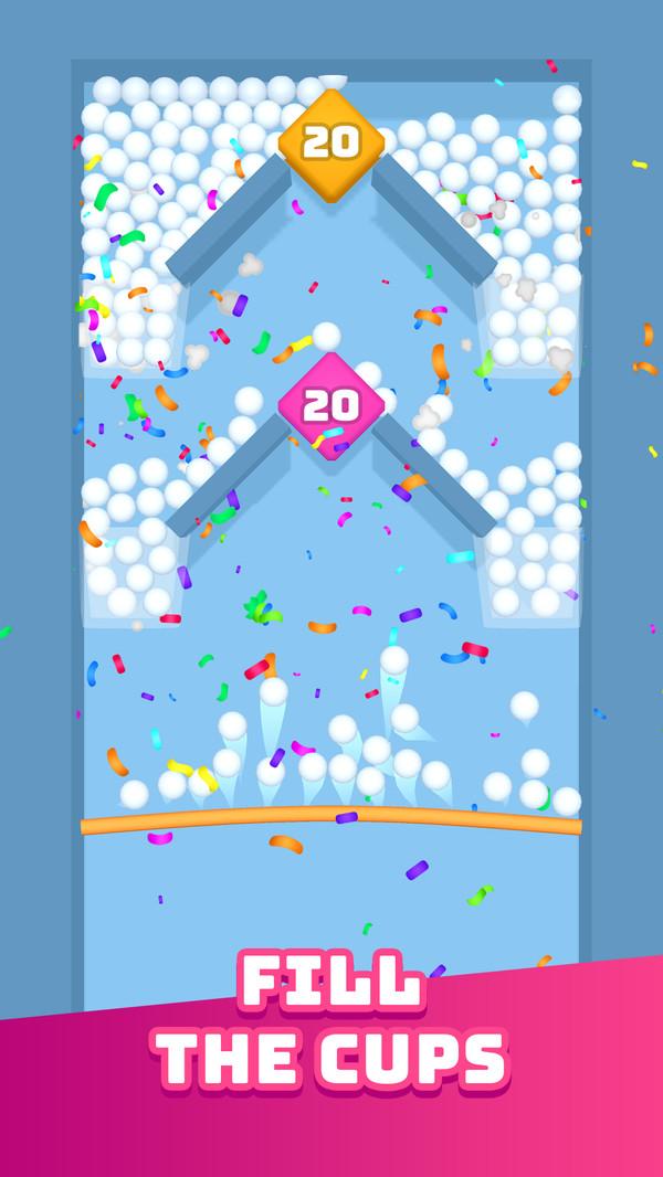 一个看似简单规则的游戏,可是我却一直未能很好的完成游戏所给的内容,一切的原因都是我太菜!好吧我承认我不太适合。填满杯子游戏是简单的将球发射出去再将球收集到杯子里的简单游戏,杯子满了就赢了。可是为什么我的就装不满呢?你们快点下载看看吧!我始终相信有人比我菜!