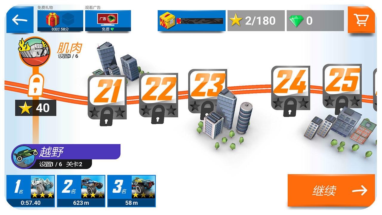 可以供玩家进行挑战,卡通的游戏画风和色彩绚丽的游戏背景,给玩家视觉享受,