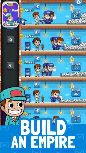 空闲邮件大亨是一款设定非常有趣的放置类模拟经营手游,游戏采用小清新的风格打造,在这款游戏中你将化身为一名邮递员,需要帮助游戏中的人们将邮件寄送到指定的位置,通过管理您的邮局来获取利润,让自己成为有史以来最伟大的邮件大亨!
