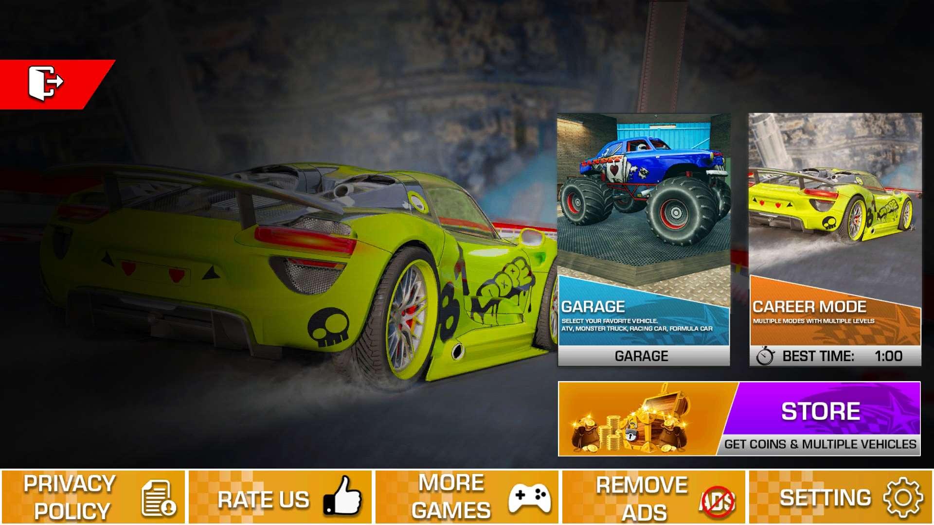 1.独特的高品牌超级跑车,其强劲的性能可以让您轻松控制各种不同的特技赛道;