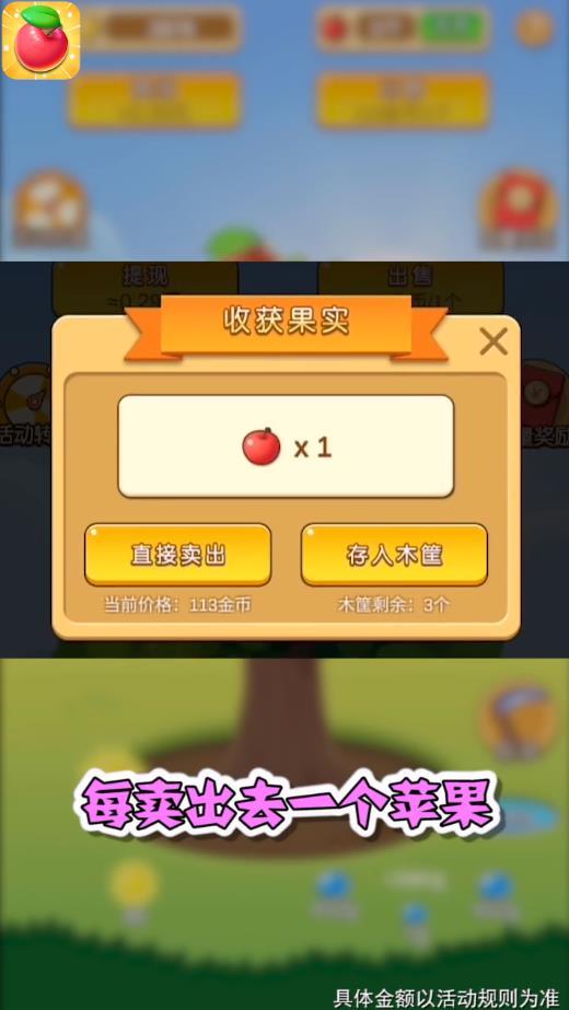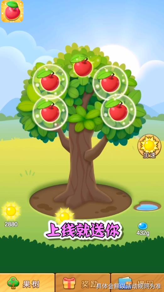 玩家开局可以种苹果树,获得金币,解锁新奖励。