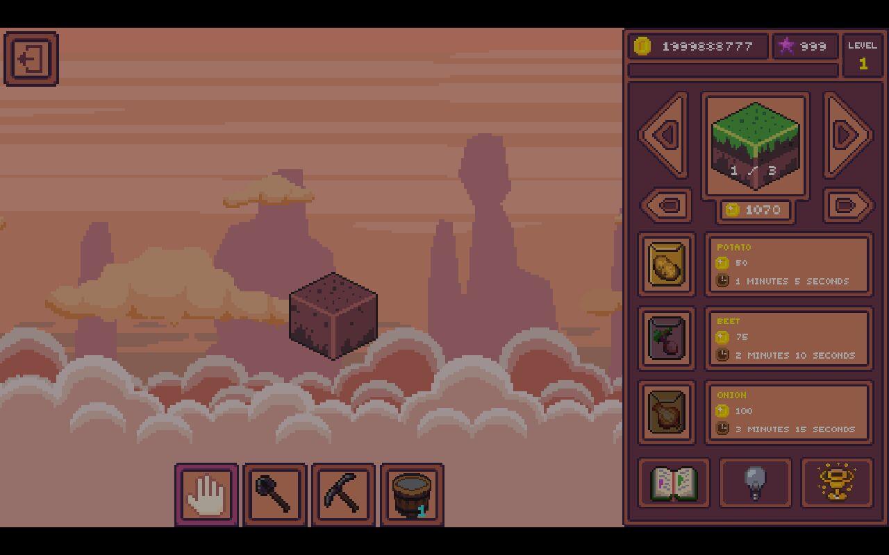 一款像素风经营游戏,本作会提供一个个45度角的小箱庭,玩家可以在上面的一个个小方格上建造建筑或种植农作物。