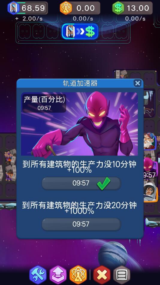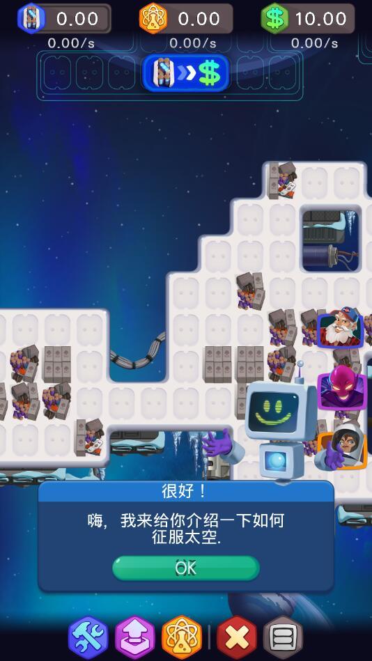 游戏中玩家可以通过升级自己的科技来提高自己的采集效率和采集范围,通过不断地将原始资源转换成能源进行出售换取利润;