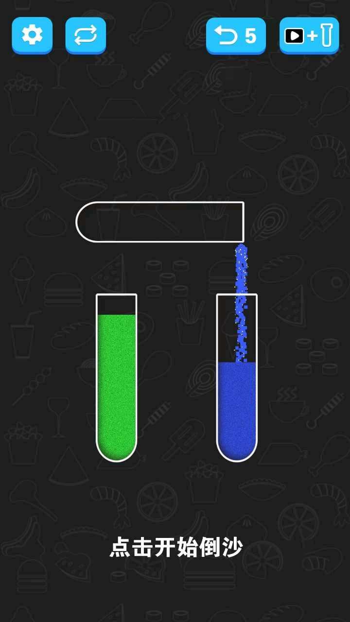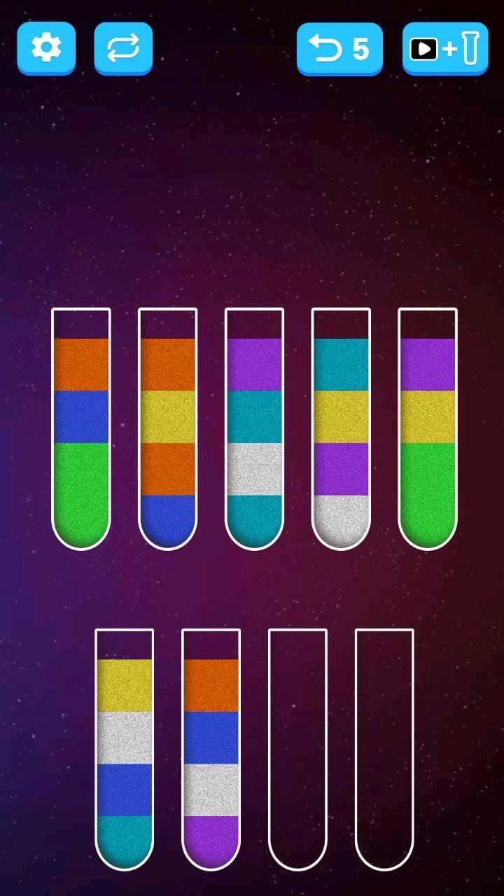 2、非常的简单,适用与所有人群,将颜色相同的沙子倒入试管中就可以过关。