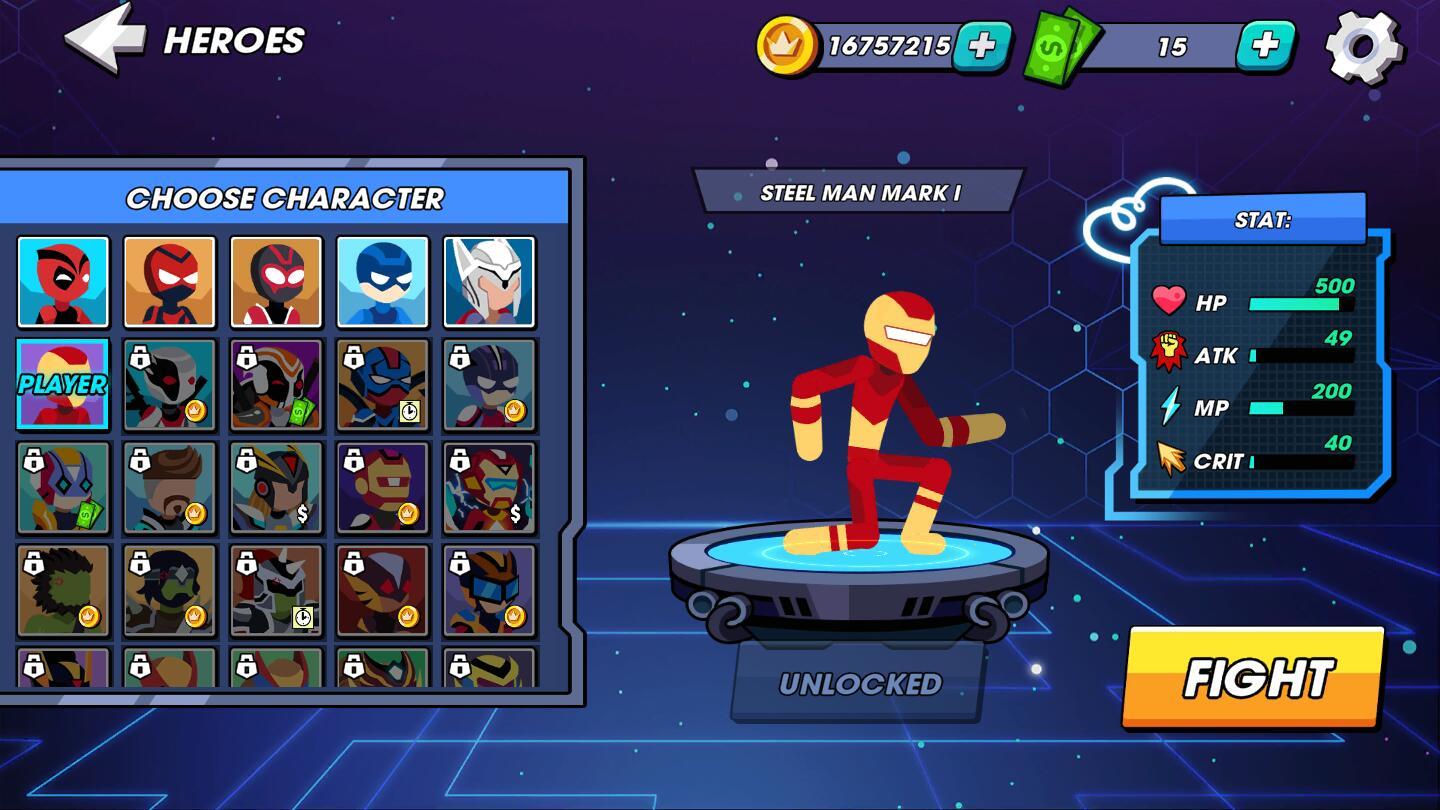 有超过50个具有强大和令人着迷技能的超级火柴人战士,完成挑战并赢得战斗以解锁新英雄;
