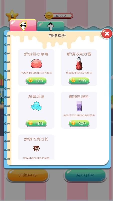1、定制与墙纸,装扮你的冰淇淋商店;出售自己做的美食,与小伙伴们传递快乐;