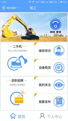用户可以通过条件筛选,查看周边的设备出租、求租信息;也可以通过“发布信息”功能,将设备的详细信息、出租条件及机主信息上传至“剪工”,通过审核后即可展示。