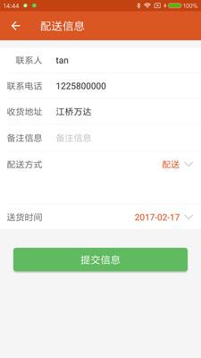1、 订货确认界面可以填写联系人、联系电话和收货地址信息;