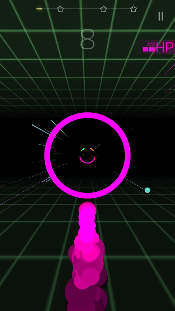 如果没有接触到或是触碰了错误的曲线,则游戏将会立刻结束