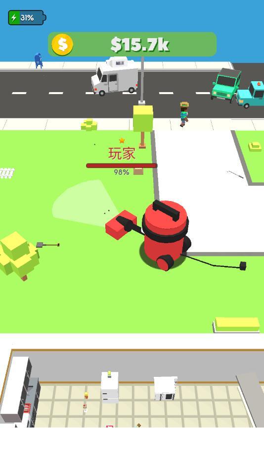 吸尘大作战是一款非常解压的休闲游戏,这款游戏已为大家破解为无条件使用金币,而且还能免广告获得奖励,玩家需要操控吸尘器来吸任何的物体,甚至连汽车都能吸进去,您吸得越多,分数也就会越高,提升吸尘机的等级可以有效的提高您的吸尘能力;