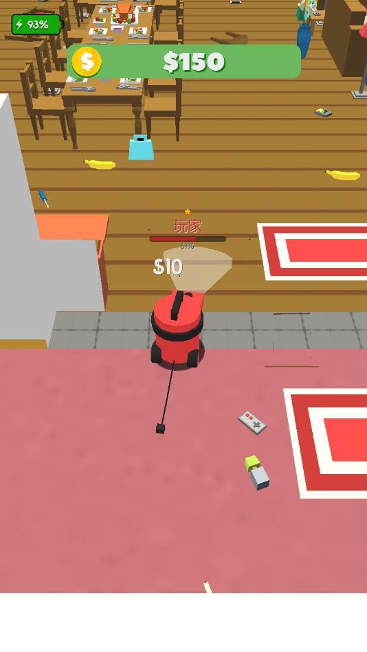 卡通版的游戏画风,让吸尘器体积变大开始吃掉比你弱小的吸尘器;