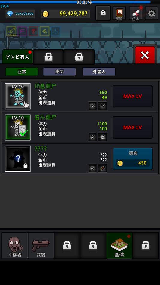 培养幸存者破解版是修改了游戏的货币属性,玩家进入游戏就能够看到是有着无限多的钻石金币能够随意地使用的,这是一款玩起来相当的爽快的像素风格的射击养成类游戏,游戏中你将要从各种方面来培养你的幸存者,在这个僵尸的世界中活下去。