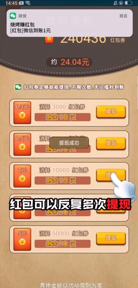 烧烤赚红是一款非常富有趣味性的以美食为题材的模拟经营类赚钱游戏,以经营一家烧烤摊为主要目的,不断进行多样烧烤的研发解锁,就可以赚取更多的收益,才能够让你的烧烤摊越来越大,生意越来越好,赚的越来越多,还有着红包奖励呢!