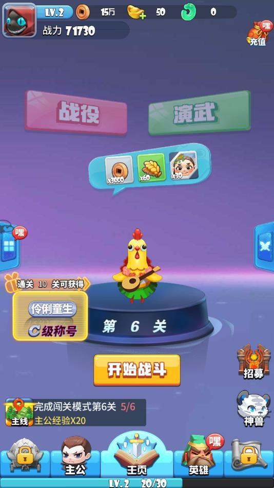 英雄不仅可以以升级的方式提升它的初始战力,还可以用合成方式,合成跟你更高等级,从而获得更高的战斗力,更大机率的赢得战争的胜利。