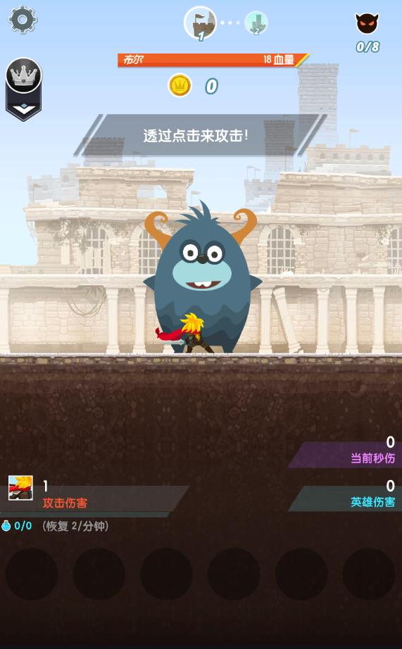 收集金币,提升装备。游戏画风清新,操作简单,只需要不断的点击出现的怪兽即可。