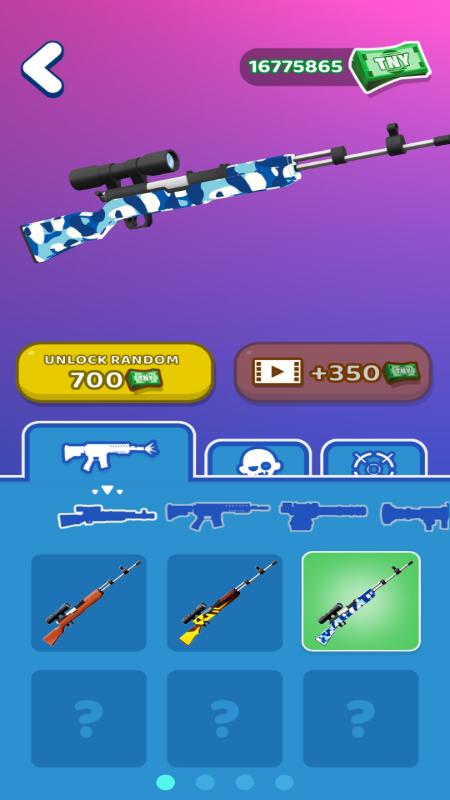 2、武器枪械任你选择,不同类型的枪支自由切换,武器攻击力越高你越容易赢得胜利;
