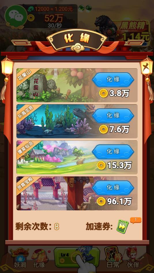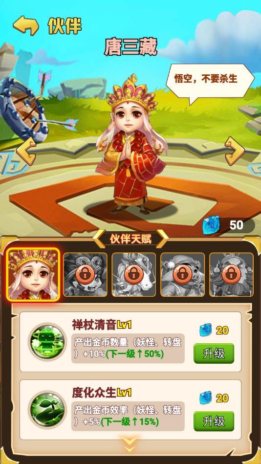除魔西游让你感受充满西游元素的合成冒险玩法,不断解锁更加多样的妖怪,进行金币的不断赚取,支持进行化缘操作,不断进行更多的伙伴的解锁,玩法是非常简单的,不断进行等级的突破,才能够解锁更多有趣的玩法。
