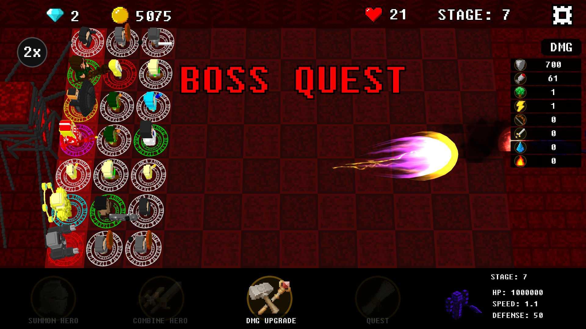 收集各种武器道具,在关键时刻释放你的大招,能直接的消灭全屏的boss;