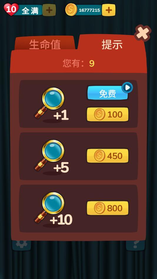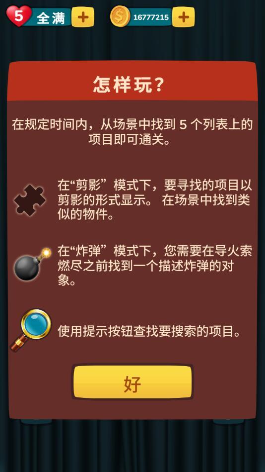 益智解谜寻物神探是一款找茬玩法的游戏,这款游戏已修改为无限的金币,玩家在没有生命和提示的时候,就可以使用金币来购买,游戏中玩家需要在场景内找出指定的物品,一个有三种模式可以供您体验,考验您的眼力,注意力集中才能快速找出目标;