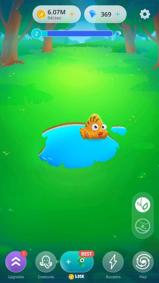 戏的进程是慢慢浮现的,必须用两种相同的生物进行合成才可以进化成下一种生物,非常的时候闲暇的时候来玩消磨时间;