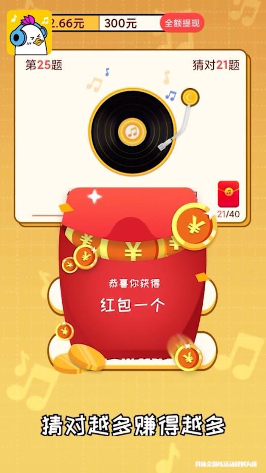 只要不断猜歌,完成对应的任务,就可以获得足额的红包哦,来一起加入吧。