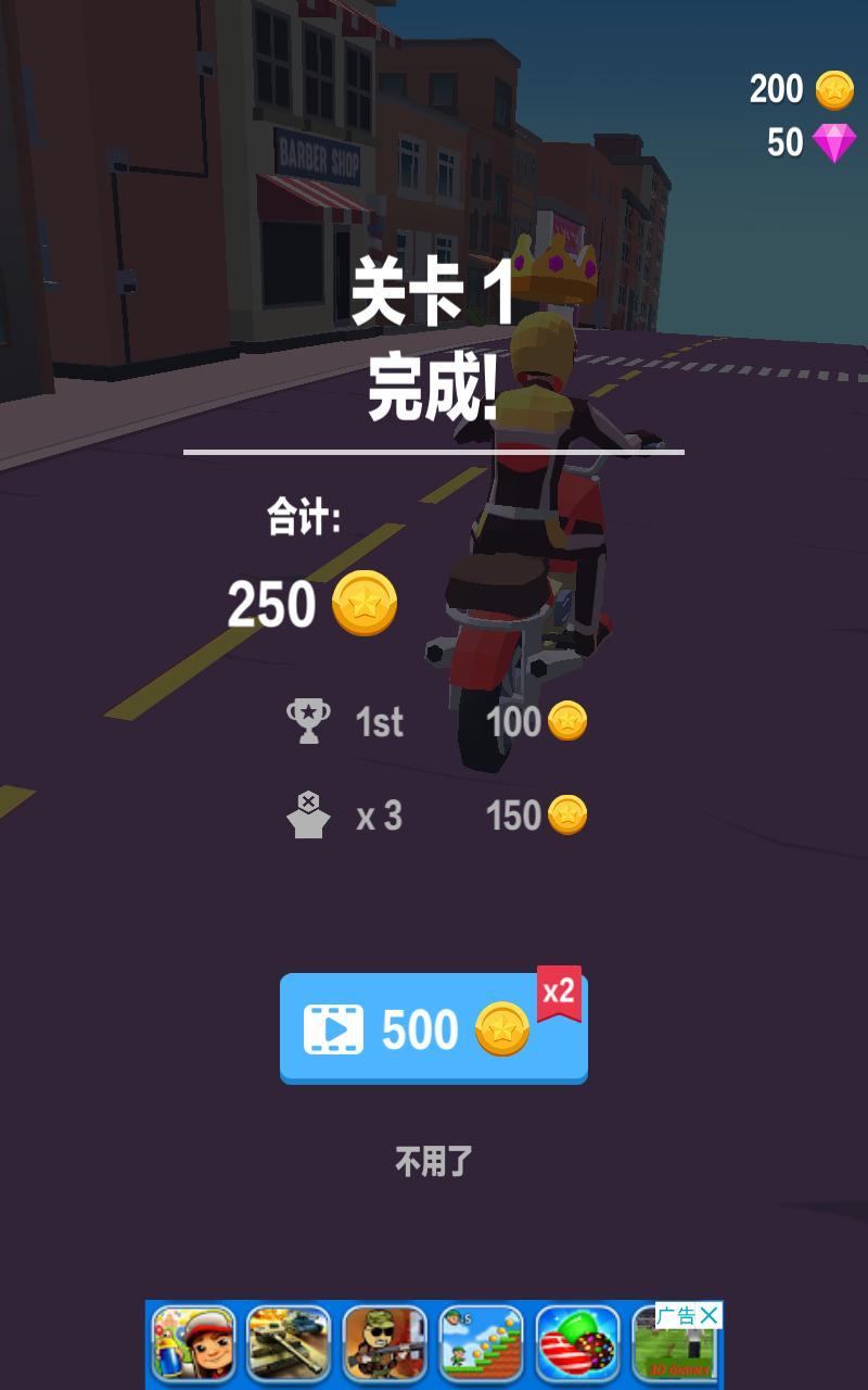 3、驾驶的时候选择道路中间可以方便快速的移动,越多的奖励关卡的奖励将会随着时间逐渐增加。