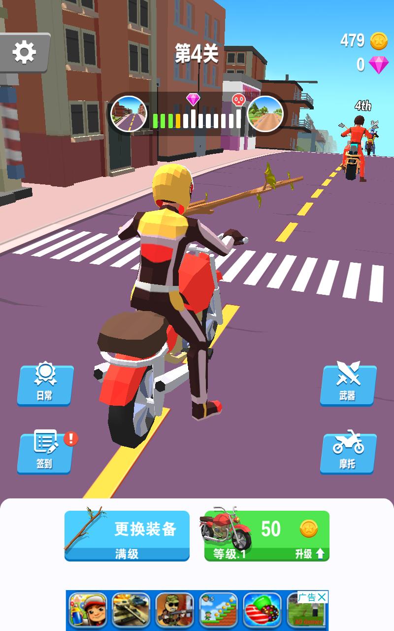1、驾驶改装过摩托车,在赛道中自由的行走,增强它的动力,提升属性级别。