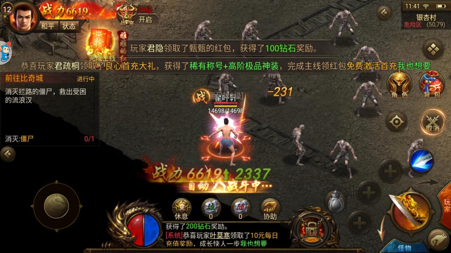 决战比奇城让你感受非常精彩的经典传奇玩法,超多有趣的玩法让你自由进行挑战,不一样的职业感受不一样的玩法,职业是可以自由进行选择的,跟随主线任务,轻松即可进行多个地图的闯荡冒险,不断进行多个方面数据的提升。