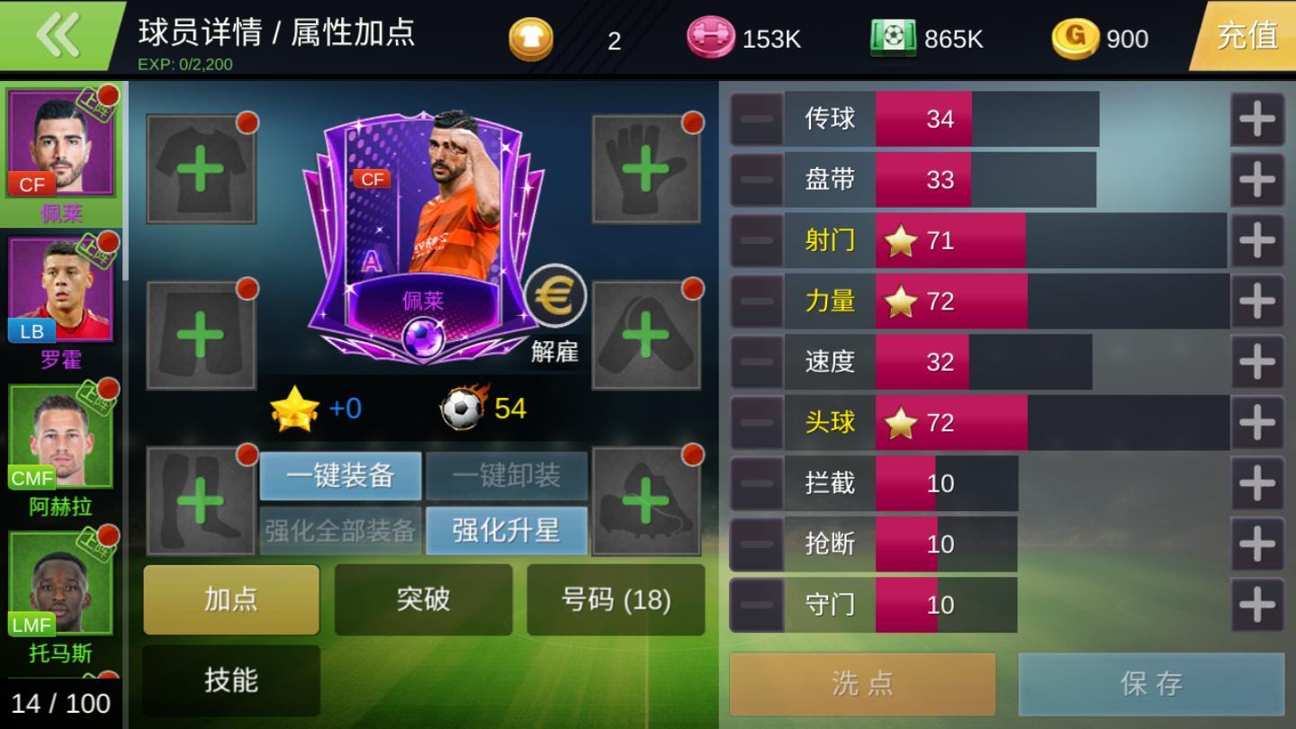 球员是可以进行培养的,支持进行升级以及装备的穿戴,进行点数的提升。