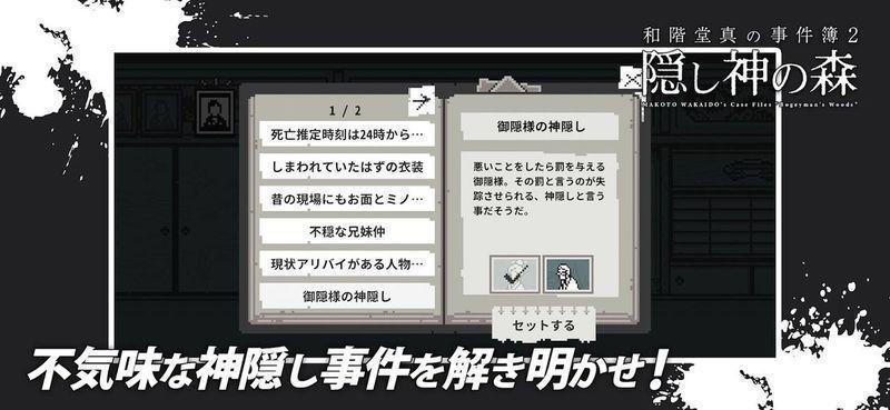 和阶堂真事件簿的第二部作品神隐之森来了,这次的背景故事发生在昭和年间的一个小村庄,玩家需要在游戏中根据剧情进行探索和解谜,拨开重重迷雾发现真相,与人物产生的对话都会包含有线索,您需要充分思考和注意细节才行,这样才能完成所有的谜题;