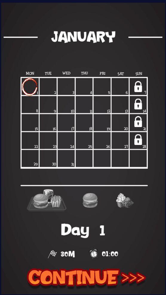 汉堡店,很休闲的一款游戏,玩法很简单,并且游戏中只要玩家的汉堡正确制作就可以卖出去,然后获得金币,进入游戏玩家可以看到一本日历,这就是玩家的工作日历表,每一次的工作都是有时间限制的,时间到了今天的任务也就完成了。