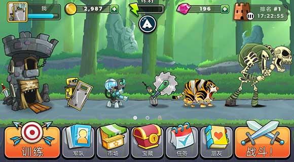 其中画面是卡通画风,看的很舒服,操作也不算复杂,平面推塔而并非是上帝视角,游戏难度设置的很合理,真的很合理,基本金币不缺,钻石每天完成任务就会有,而且每天能免费获得一张卡的碎片,游戏单位很多,每个单位特色不同,个人觉得搭配起来很有意思,不过体力这个有点坑,用完了就只能老老实实等着回复,目前不知道游戏有多少关卡,希望以后继续更新。