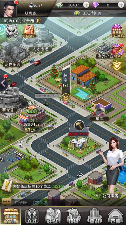 百万大咖让你感受非常精彩的以商业为题材的模拟经营类赚钱游戏,在这里你需要从零开始,不停的进行多样店铺的建造,支持员工的招募以及人才的派遣,人才的派遣能够有效的进行店铺收益的提升,不断进行更多有趣的玩法的解锁。
